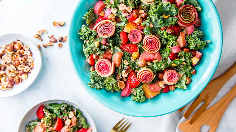 Did you know rhubarb has a savory side? Balance out earthy greens with sweet summer fruit...