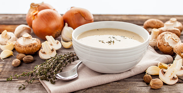 Looking to warm up? This vegan cream of mushroom soup hits the spot on cool days....