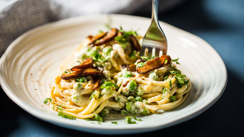 Pasta Carbonara like you’ve never had before, plant-based style. Smoky mushrooms with fresh green peas will...