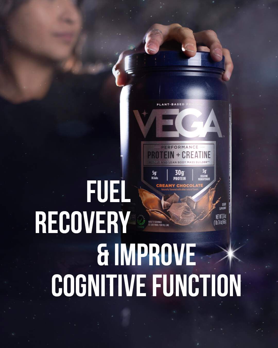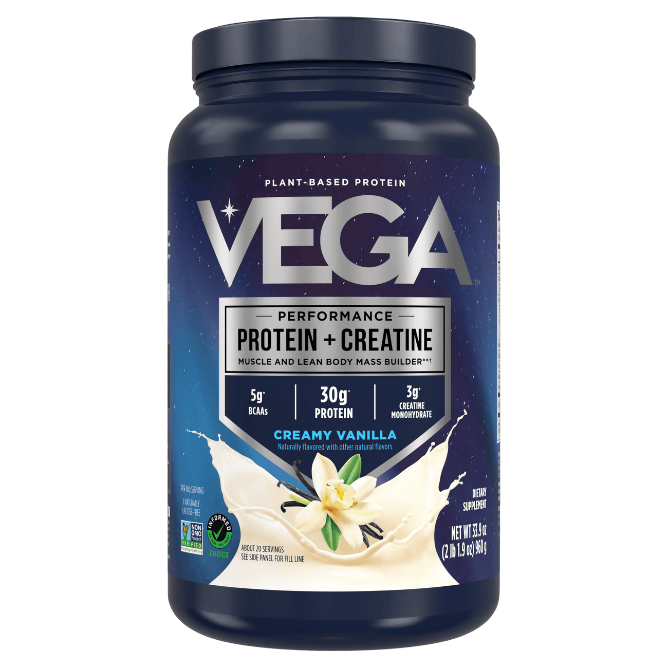 • Vega Protein + Creatine provides a powerful combo that can help support muscle growth, lean body mass, recovery, and overall workout performance.