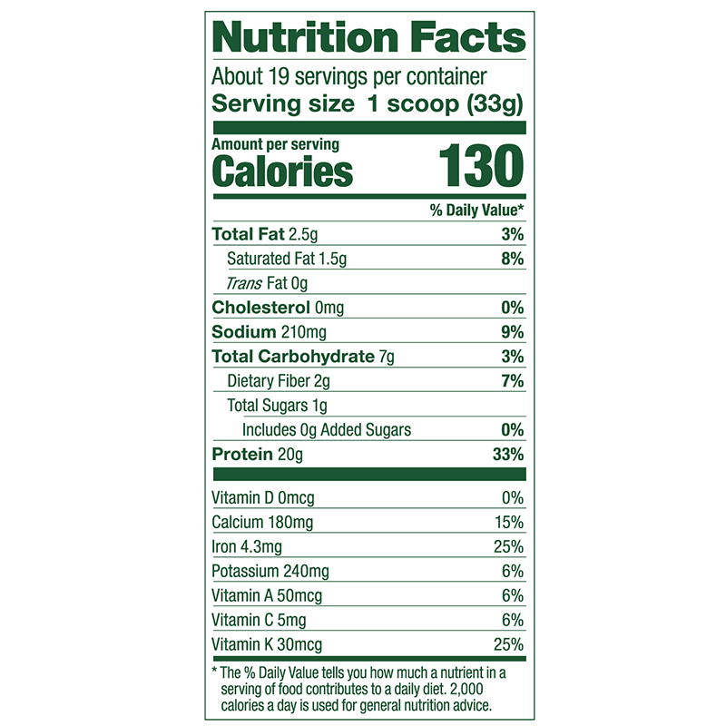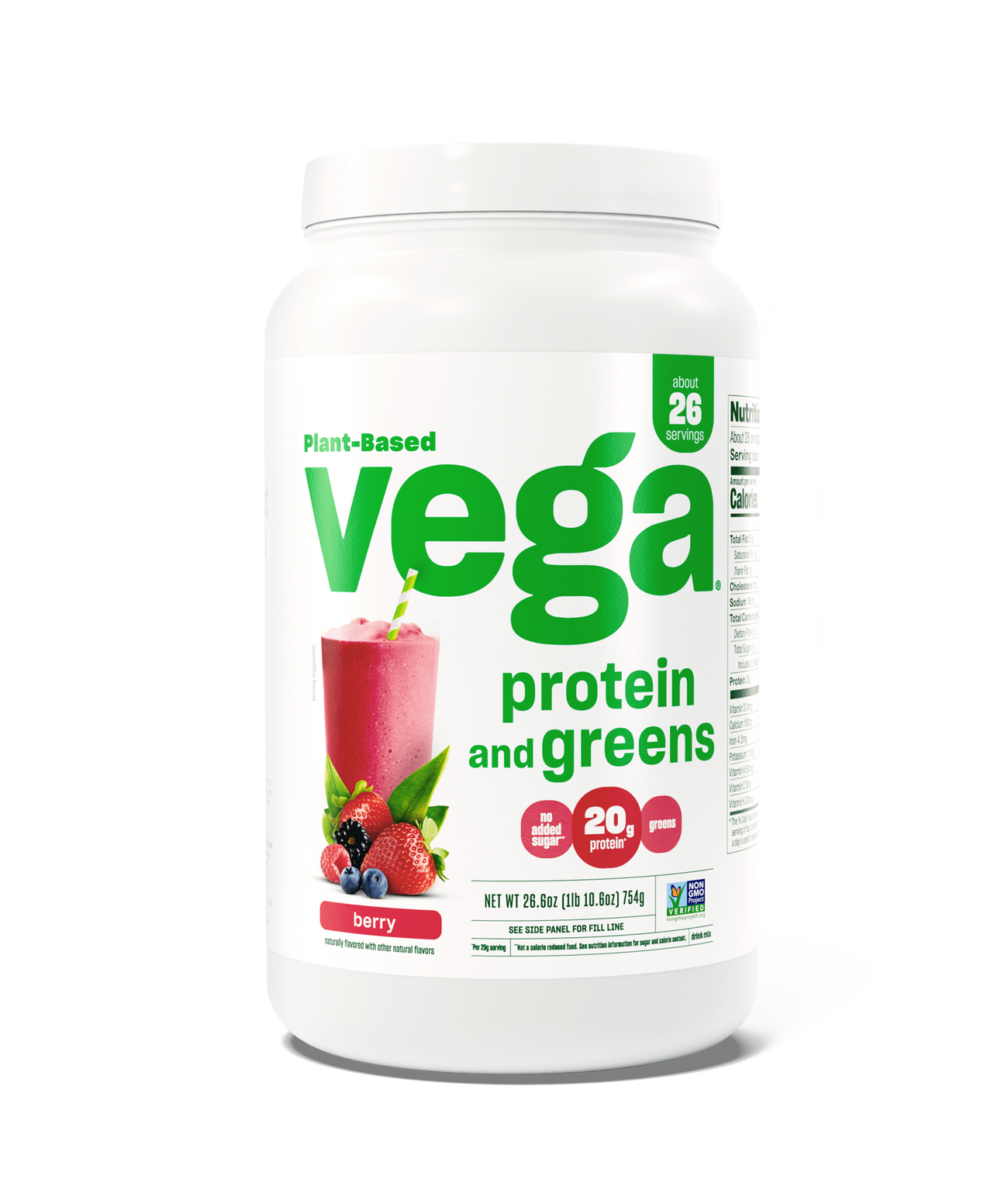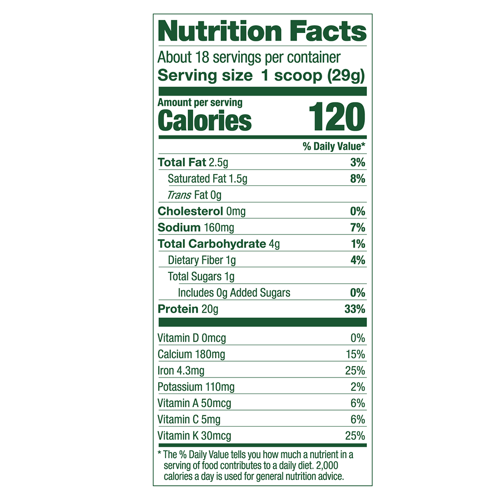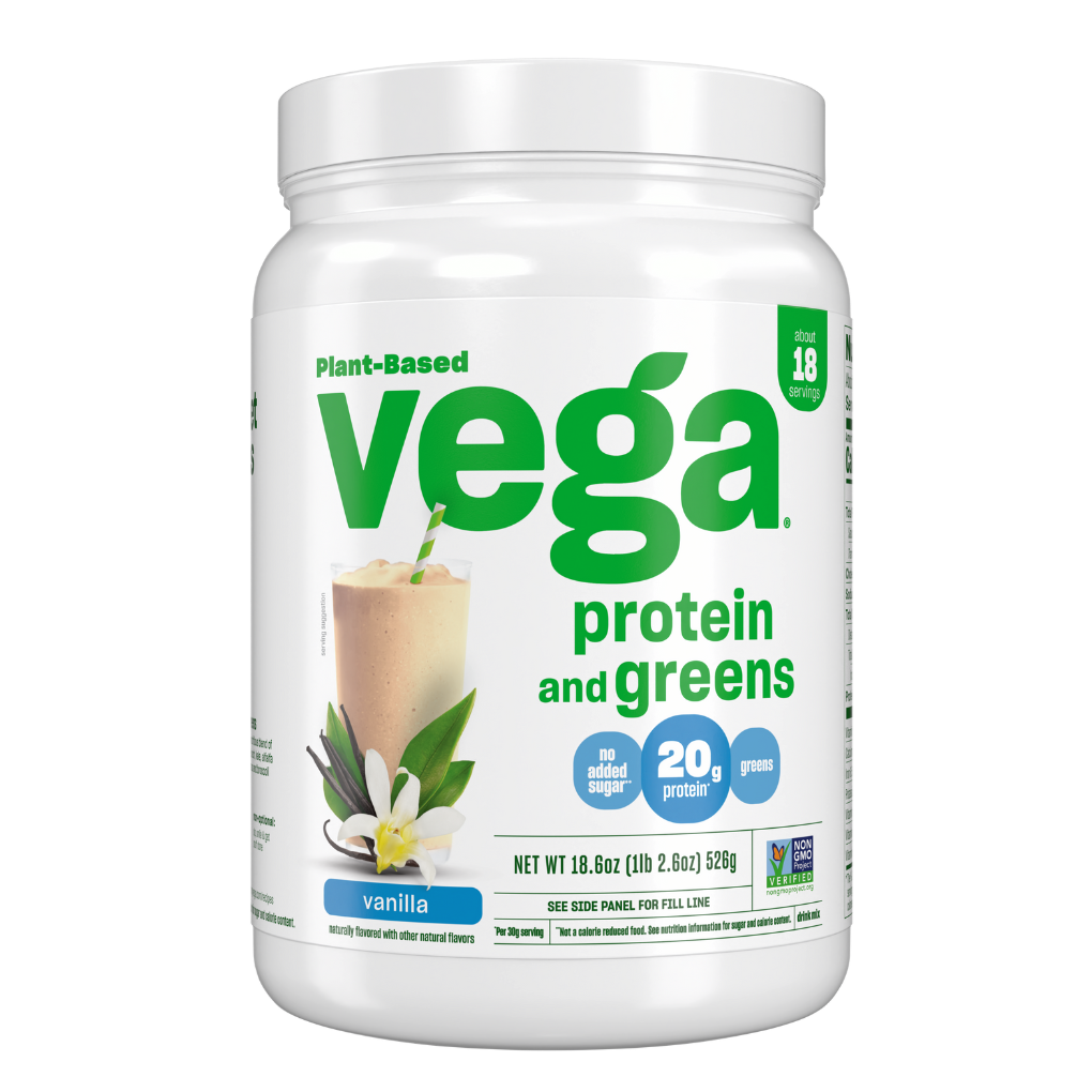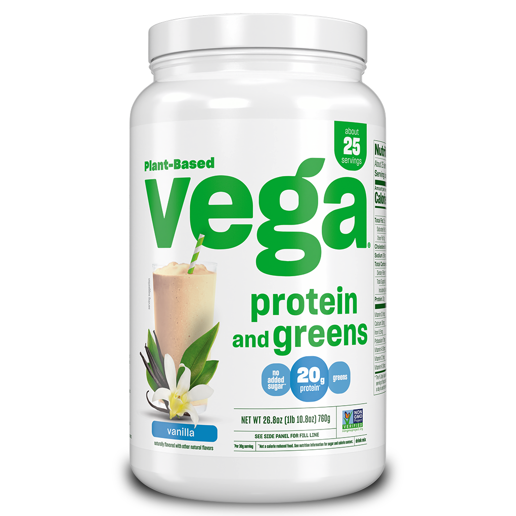Green feels good. Add extra greens and protein to your daily routine without skipping a beat with Vega® Protein and Greens. Each scoop is stacked with kale, alfalfa, broccoli and spinach, plus 20g of plant-based protein.